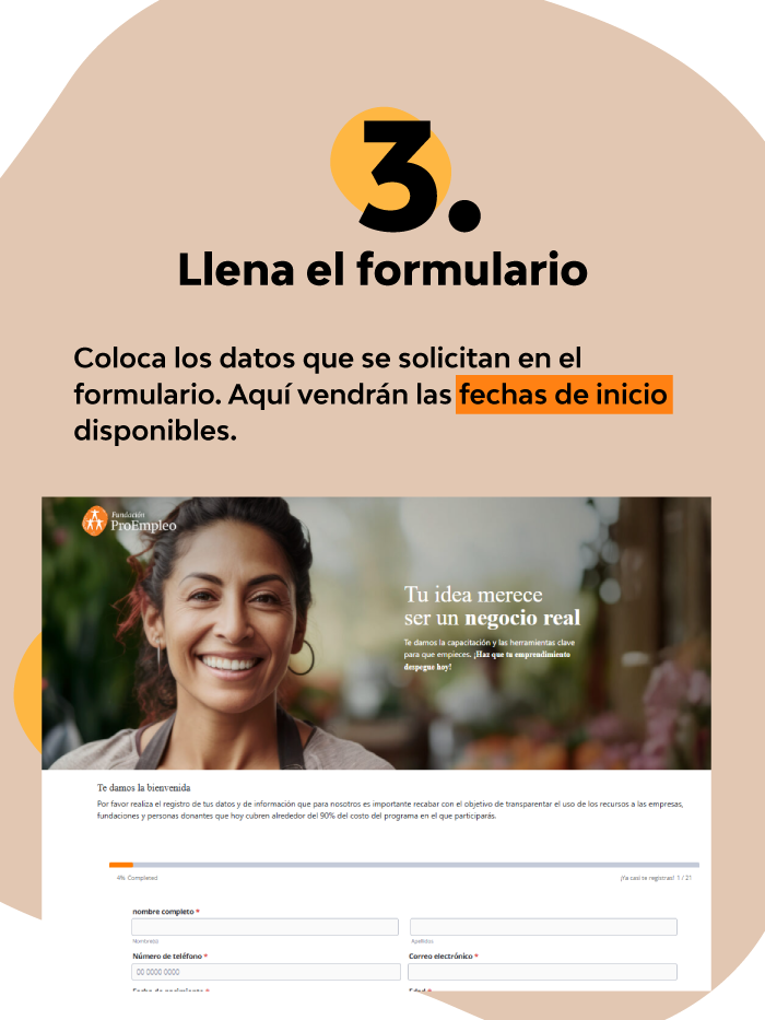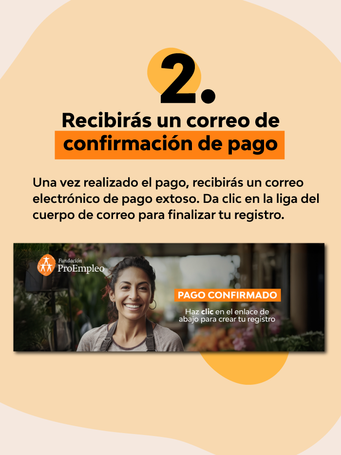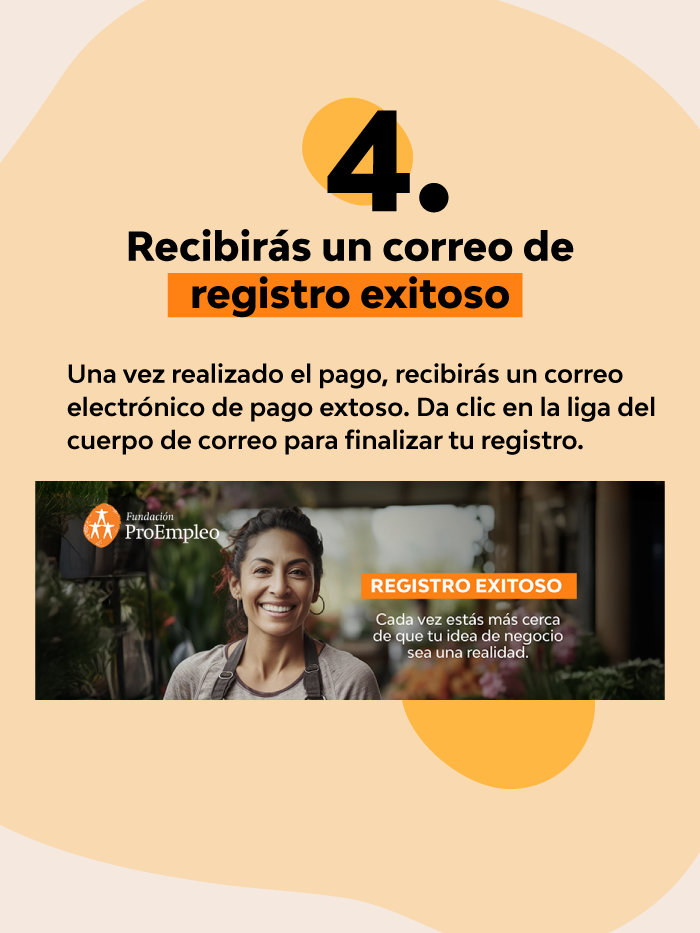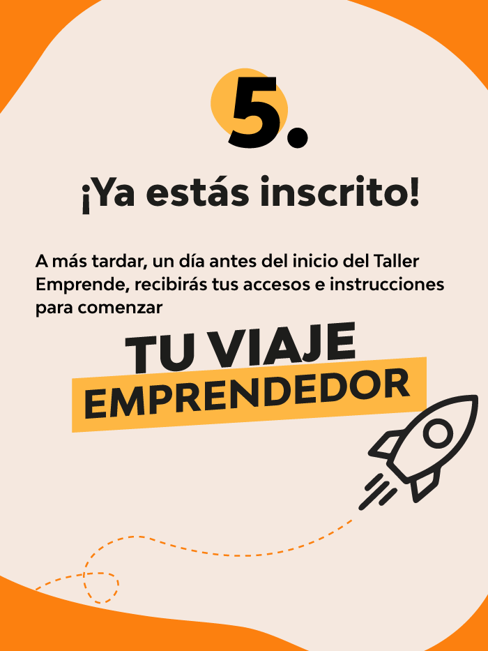 - Recibirás un correo electrónico con la confirmación de tu pago y un enlace único e intransferible para que puedas registrarte al Taller Emprende.